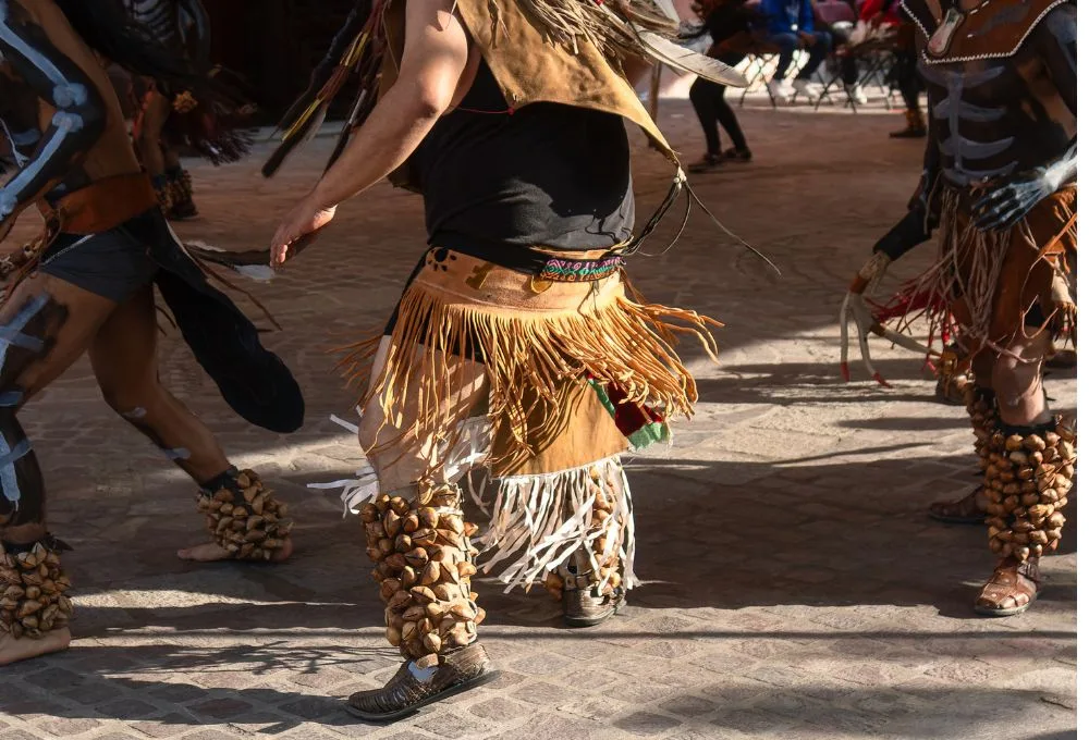 Los danzantes, organizados en dos bandos (usualmente “Apaches” y “Contras” o “Diablos”), realizan una coreografía de enfrentamiento.