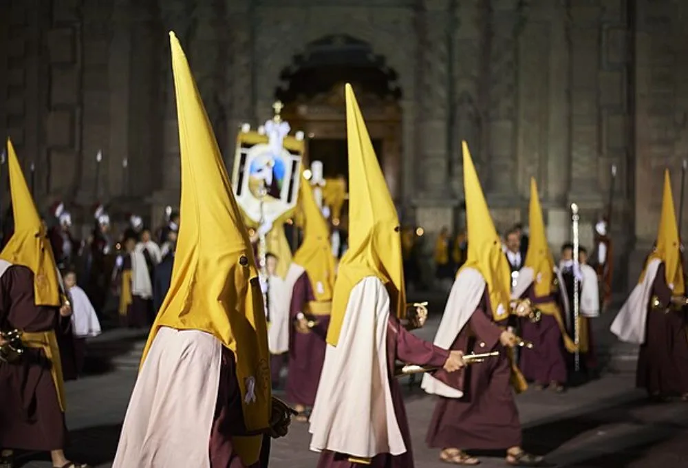 El silencio representa el luto y la reflexión por la muerte de Cristo. El capirote, aunque similar al del Ku Klux Klan, tiene un origen católico: simboliza la vergüenza del pecado y la elevación del alma hacia Dios.